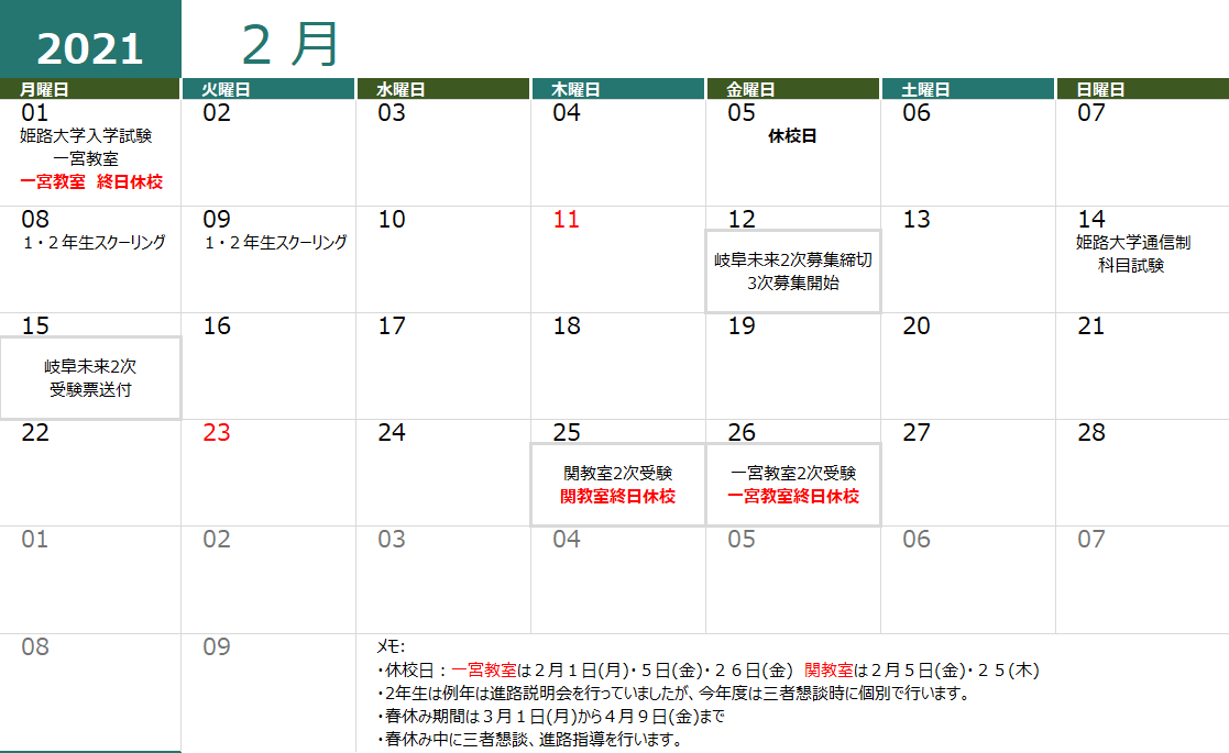 印刷したスケジュール表が欲しい生徒は、職員へ声をかけてください。