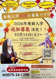 【来春入学、最後の募集となります】