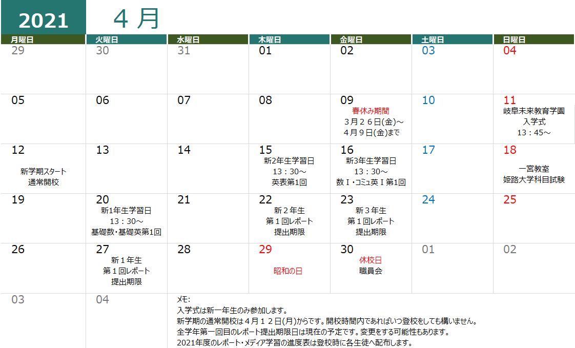 教室は4月12日(月)より開校しますので、いつでも登校できます。
