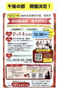 2月14日(土)中学2年生向け進路説明会の空き状況についてお知らせします。