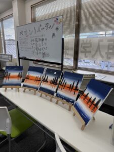 2025.09.30関教室 ペイントパーティー🖼先日、関教室で ペイントパーティーが開かれました✨ なんと生徒が講師を務めました! みんなでお話ししながら、 和気あいあいとした雰囲気でした🍀 どの作品もとても素敵でした💛 前へ 一覧へ 次へ