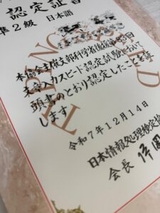 以下に検定中の様子と、認定証書を掲載します📷🏆